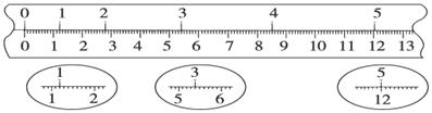 4、实验题 在“探究小车速度随时间变化的规律”的实验中,打点计时器使用的交流电的频率为50Hz,记录小车运动的纸带如图所示,在纸带上选取0,1,2,3,4,5共6个计数点,相邻两计数点之间还有四个点未画出.纸带旁并排放着最小分度为mm的刻度尺,计算小车通过计数点“2”的瞬时速度为v2=_____ m/s,v4=_____m/s,小车的加速度是a=____ m/s2.(保留两位有效数字)