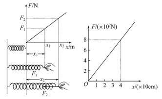C.当弹簧受F2="800" N的拉力作用时,弹簧伸长量为x2=40 cm