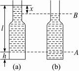 2、实验题 如图所示为一上细下粗的容器,上部横截面积为S,下部横截面积为2S,内有密度为ρ的液体,容器的底部有高为h的气泡,当气泡上升,从细部升出液面时(液面仍在细部),重力所做的功为___________.