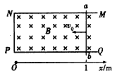 1、计算题 如图,宽度L=0.5m的光滑金属框架MNPQ固定于水平面内,并处在磁感应强度大小B=0.4T,方向竖直向下的匀强磁场中,框架的电阻非均匀分布将质量m=0.1kg,电阻可忽略的金属棒ab放置在框架上,并与框架接触良好以P为坐标原点,PQ方向为x轴正方向建立坐标,金属棒从x0=1m处以v0=2m/s的初速度,沿x轴负方向做a=2m/s2的匀减速直线运动,运动中金属棒仅受安培力作用,求: