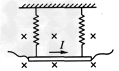 2、计算题 一均匀导体棒质量为m,由两根相同的劲度系数为k的轻弹簧悬挂在水平位置,通入如图所示的电流I后,弹簧伸长量为x0,如果将电流反向,大小不变,平衡后,弹簧伸长量为多少?