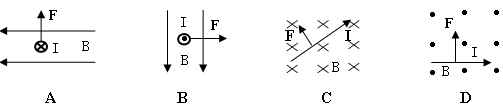 C、由左手定则知C图中安培力方向垂直电流方向向上;正确