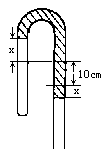1、计算题 如图所示,左端封闭,右端开口的均匀U型管中用水银封有一段长150mm的空气柱。左臂总长为250mm,右臂足够长。如果将管的开口变为竖直向下,求空气柱的长度。(设大气压为750mmHg)