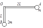 2、计算题 一质量不计的直角形支架两端分别连接质量为m和2m的小球A和B,支架的两直角边长度分别为2L和L,支架可绕固定轴O在竖直平面内无摩擦转动,如图所示,开始时OA边处于水平位置,由静止释放。