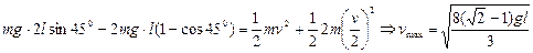 参考答案:利用力矩平衡,A球转过450角,速度达到最大。