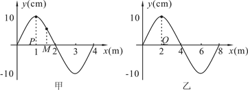 5、选择题 波速均为v=2m/s的甲、乙两列简谐横波都沿x轴正方向传播,某时刻波的图象分别如图所示,其中P、Q处的质点均处于波峰。关于这两列波,下列说法正确的是