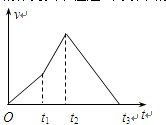 4、选择题 某科技兴趣小组用实验装置来模拟火箭发射卫星.火箭点燃后从地面竖直升空,t1时刻第一级火箭燃料燃尽后脱落,t2时刻第二级火箭燃料燃尽后脱落,此后不再有燃料燃烧.实验中测得火箭竖直方向的速度—时间图像如图所示,设运动中不计空气阻力,燃料燃烧时产生的推力大小恒定.下列判断正确的是?