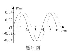 1、选择题 一列简谐波在两时刻的波形如题14图中实践和虚线所示,由图可确定这列波的
