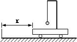 4、计算题  (16分)小车上有一个固定支架,支架上用长为 的绝缘细线悬挂质量为m、电量为q的小球,处于水平方向的匀强电场中。小车在距离矮墙x处,向着矮墙从静止开始做加速度a匀加速运动,此时,细线刚好竖直,如图所示。当小车碰到矮墙时,立即停止运动,且电场立刻消失。已知细线最大承受拉力为7mg。