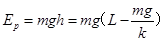 2、选择题 如图所示,重物A质量为m,置于水平地面上。一根轻质弹簧,原长为L,劲度系数为k,下端与物体A相连接。现将弹簧上端点P缓慢地竖直提起一段高度h使重物A离开地面。这时重物具有的重力势能为(以地面为零势能面)