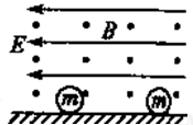 =0.5T的水平向外的匀强磁场后,带电小球开始运动,与不带电小球相碰后粘在一起,则两球碰后的速度为________m/s,两球碰后到两球离开水平面,还要前进_________m。