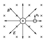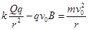 4、选择题 空间存在一个匀强磁场B,其方向垂直纸面向里,还有一点电荷Q的电场,如图所示,一带电粒子-q以初速度v0从图示位置垂直于电场、磁场入射,初位置到点电荷+Q的距离为r,则粒子在电、磁场中的运动轨迹不可能为? ( )