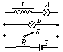 3、选择题  在图示电路中,L为自感系数较大的线圈。S断开时,灯泡A和B都正常发光。若将S突然接通,则