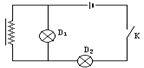 A.K闭合瞬间,两灯同时亮,以后D1熄灭,D2变亮