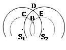1、选择题 如图是某时刻t两列波的叠加图,S1、S2是相干波源,它们的振动情况完全相同,发出两列完全相同的水波,波峰、波谷分别用实线、虚线表示,下列说法正确的是(?)