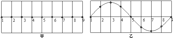 5、简答题 一列简谐横波向右传播,在其传播路径上每隔L=0.1m选取一个质点,如图甲所示,t=0时刻波恰传到质点1,并立即开始向上振动,经过时间△t=0.3s,所选取的1-9号质点间第一次出现如图乙所示的波形,则下列判断正确的是:______