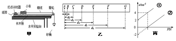(Ⅲ)分析丙图可得小车质量m=?kg;假设得到图线②时长木板水平且小车和木板间的摩擦为滑动摩擦,则他们接触面间的动摩擦因数μ=?。(g取10m/s2)