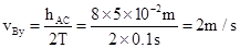 根据平抛运动竖直方向匀变速直线运动特点可知,物体在B点时竖直方向的速度为:,