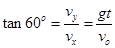 点评:根据垂直落在斜面上判断出合速度方向与水平夹角为60°,利用分速度与合速度的关系求解时间。