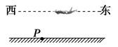 4、选择题 如图所示,一架战斗机在距地面高度一定的空中,由东向西沿水平方向匀速飞行,发现地面目标P后,开始瞄准并投掷炸弹.若炸弹恰好击中目标P,假设投弹后飞机仍以原速度水平匀速飞行,则(空气阻力不计)( )