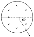 3、选择题 如图所示,圆形区域内有垂直纸面向里的匀强磁场,磁感应强度为B,一带电粒子(不计重力)以某一初速度沿圆的直径方向射入磁场,粒子穿过此区域的时间为t,粒子飞出此区域时速度方向偏转60°角,根据上述条件可求下列物理量中的