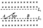 2、选择题 如图所示,L1和L2为两平行的虚线,L1上方和L2下方都是范围足够大,且磁感应强度相同的匀强磁场,A、B两点都在L2上。带电粒子从A点以初速度v0与L2成30°角斜向右上方射出,经过偏转后正好过B点,经过B点时速度方向也斜向上,不计重力,下列说法不正确的是