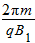 1、选择题 如图所示,MN为两个匀强磁场的分界面,两磁场的磁感应强度大小的关系为B1=2B2,一带电荷量为+q、质量为m的粒子从O点垂直MN进入B1磁场,则经过多长时间它将向下再一次通过O点( )