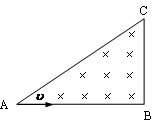 2、选择题 匀强磁场的边界为直角三角形ABC,一束带正电的粒子以不同的速率沿AB从A处射入磁场,不计粒子的重力。则 (?)