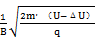 设m/为铀238离子质量,由于电压在U±ΔU之间有微小变化,铀235离子在磁场中最大半径为:Rmax =