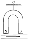 2、选择题 如图所示,蹄形磁体用悬线悬于O点,在磁铁的正下方有一水平放置的长直导线,当导线中通以由左向右的电流时,蹄形磁铁的运动情况将是