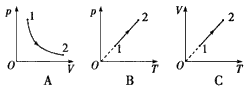2、填空题 若一定质量的理想气体分别按下图所示的三种不同过程变化,其中表示等压变化的是_____________(填“A”、“B”或“C”),该过程中气体的内能_____________(填“增加”、“减少”或“不变”)。