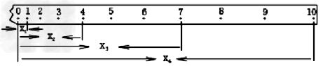 2、实验题 在验证“机械能守恒定律”的实验中,由于在运动的初始阶段计时器打出一些点迹模糊不清,故必须选择比较清楚的点作为测量起点,现所选的测量范围的第一点在米尺上的位置为x1,第四点在米尺上的位置为x2,第七点在米尺上的位置为x3,第十点在米尺上的位置为x4,如图。若下落物体的质量为m,打点计时器每隔T秒打一点,则可利用上述数据求出物体从第四点到第七点这一段过程中势能的减少量是__________,动能的增加量是__________,若打点计时器使用的交流电频率为50Hz,读得x1=2.8cm,x2=8.1cm,x3=16.8cm,x4=29.1cm,则势能的减少量为__________,动能的增加量为__________。(g=9.9m/s2,结果保留两位有效数字)