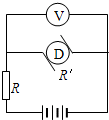 4、简答题 如图电路中,电池组的电动势E=42V,内阻r=2Ω,定值电阻R=20Ω,D是电动机,其线圈电阻R′=1Ω.电动机正常工作时,理想电压表示数为20V.求: