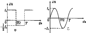 5、选择题  A、B是两个完全相同的电热器,A通以图甲的方波交变电流,B通以图乙所示的正弦交变电流,则两电热器的电功率之比PA:PB等于(  )