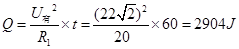 ,A错,B对;滑动变阻器一分钟之内产生的热量为: