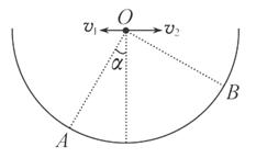 2、选择题 如图所示,在竖直放置的半圆形容器的中心O点分别以水平速度v1、v2抛出两个小球(可视为质点),最终它们分别落在圆弧上的A点和B点,已知OA与OB相互垂直且OA与竖直方向成α角,求两小球初速度之比v1∶v2。