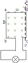 1、简答题 一矩形线圈abcd放置在如图所示的有理想边界的匀强磁场中(oo′的左边有匀强磁场,右边没有),线圈的两端接一只灯泡.已知线圈的匝数n=100,电阻r=1.0Ω,ab边长L1=0.5m,ad边长L2=0.3m,小灯泡的电阻R=9.0Ω,磁场的磁感应强度B=1.0×10-2T.线圈以理想边界oo′为轴以角速度ω=200rad/s按如图所示的方向匀速转动(OO′轴离ab边距离