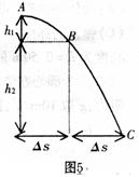 3、填空题 如图5所示的曲线是一同学做“研究平抛物体的运动”实验时画出的小球做平抛运动的部分轨迹,他在运动轨迹上任取水平位移相等的A、B、C三点,测得△s=0.2m,又测得竖直高度分别为h1=0.1m,h2=0.2m,根据以上数据,可求出小球抛出时的初速度为________________m/s。(取重力加速度