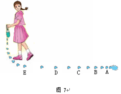 3、填空题  一同学拿着底部穿孔、每秒滴两滴水的饮料瓶测试自己的行走速度(如图7所