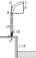 5、计算题 如图为某种鱼饵自动投放器中的投饵装置示意图,其上半部BC是半径为R的四分之一圆弧弯管,管口与水平方向垂直,下半部AB是一长为2R的竖直细管,AB管内有一原长为R、下端固定的轻质弹簧。投饵时,每次总将弹簧长度压缩到0.5R后锁定,在弹簧上端投放一粒鱼饵,解除锁定,弹簧可将鱼饵弹射出去。设质量为m的鱼饵到达管口C时,对管壁的作用力恰好为零。若不计鱼饵在运动过程中的机械能损失,且假设锁定和解除锁定时,均不改变弹簧的弹性势能。已知重力加速度为g。求: