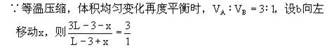 1、简答题 如图,圆筒形气缸中,有a、b、c三个可无摩擦滑动的活塞,在相邻两个活塞之间分别封闭着空气A和B,当三个活塞静止时,空气A、B体积之比为3∶1.现对活塞a、c分别施方向相反的力F,使活塞a向右移动3cm,活塞c向左移动3cm.若温度不变,待三个活塞再度静止时,活塞b移动了多少cm?
