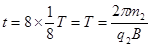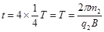 (2)m2粒子进入磁场后,做匀速圆周运动周期为T??⑤?