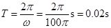 ,故用此交变电流作打点计时器的电源时,打点周期为0.02s,选项D错误;故选B.