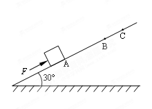 2、计算题 如图所示,小木块在沿斜面向上的恒定外力F作用下,从A点由静止开始作匀加速运动,前进了0.45m抵达B点时,立即撤去外力。此后小木块又前进0.15m到达C点,速度为零。已知木块与斜面动摩擦因数