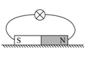 解:以导线为研究对象,导线所在处磁场方向水平向左,导线中电流方向向里,根据左手定则判断可知,导线所受安培力的方向竖直向上,由牛顿第三定律得知,导线对磁铁的安培力方向竖直向下,则磁铁对桌面的压力增大.磁铁相对于地面仍然没有运动趋势,桌面对磁铁的摩擦为零,没有变化.