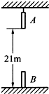 如图所示,A、B两棒各长1m,A吊于高处,B竖直置于地面上,A的下端距地面21m.现让两棒同时开始运动,A自由下落,B以20m、s的初速度竖直上抛,若不计空气阻力,则两棒从一端相遇到另一端分离所经过的时间t为