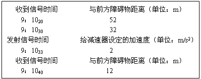 1、计算题 2004年1月25日,继“勇气”号之后,“机遇”号火星探测器再次成功登陆火星。在人类成功登陆火星之前,人类为了探测距离地球大约3.0×105km的月球,也发射了一种类似四轮小车的月球探测器。它能够在自动导航系统的控制下行走,且每隔10s向地球发射一次信号。探测器上还装着两个相同的减速器(其中一个是备用的),这种减速器可提供的最大加速度为5m/s2。某次探测器的自动导航系统出现故障,从而使探测器只能匀速前进而不再能自动避开障碍物。此时地球上的科学家必须对探测器进行人工遥控操作。下表为控制中心的显示屏的数据:(信号传送速度等于光速:C=3.0×105km/s)