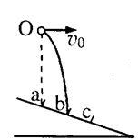 4、选择题  如图,斜面上a、b、c三点等距,小球从a点正上方O点抛出,做初速为v0的平抛运动,恰落在b点。若小球初速变为v,其落点位于c,则