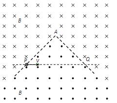 5、计算题 如图所示,空间某平面内有一条折线是磁场的分界线,在折线的两侧分布着方向相反、与平面垂直的匀强磁场,磁感应强度大小都为B.折线的顶角∠A=90°,P、Q是折线上的两点,AP=AQ=L.现有一质量为m、电荷量为q的带负电微粒从P点沿PQ方向射出,不计微粒的重力.