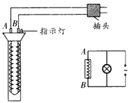 3、选择题 如图为“热得快”热水器的电路图和示意图。现接通电源,发现该热水器没有发热,并且热水器上的指示灯也不亮,现用交流电压表测得热水器A、B两端的电压为220 V,指示灯两端的电压为220 V。那么该热水器的故障在于